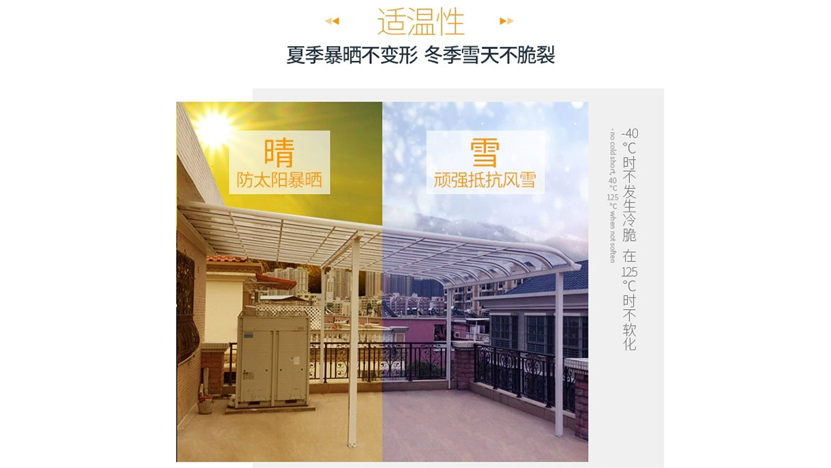 鋁合金露臺棚,很大程度可以避免雨水過大流進屋里,或者是陽光太過于炙熱,可以起到防曬的作用。