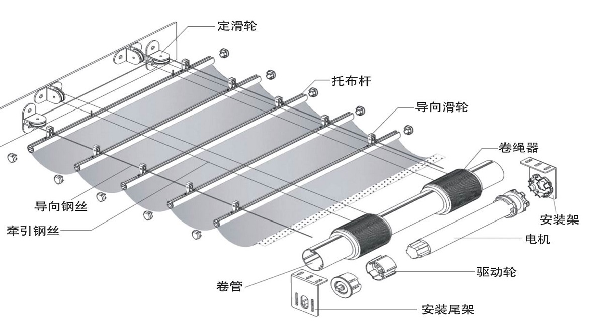 重型電動天幕遮陽篷 電動天棚簾